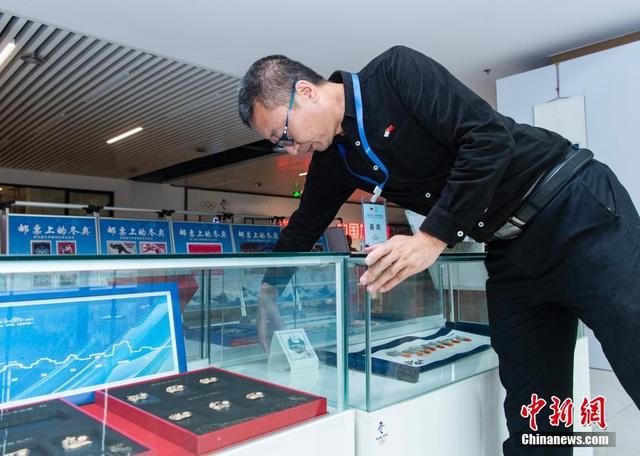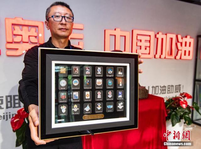 图为马烈在介绍正在持续收集中的“北京2022年冬奥会点燃冬奥倒计时系列徽章”。 中新社记者 侯宇 摄