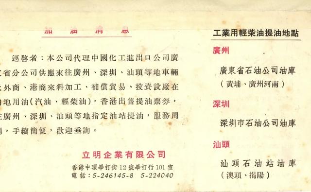 1981年到1987年底,代办加油共计6.8万吨,有力支撑了广东经济腾飞,见证了在共产党领导下的南粤巨变,这就是油品销售企业最早的广告。