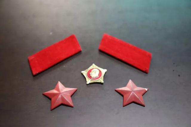 “积淀岁月风尘的五角星帽徽、鼓舞军心的臂章、伟人像章、65式领章。”看着这些尘封六十多年的红色记忆,有着59年党龄的父亲感慨良多。这是他20岁参军入伍时,中国人民解放军总政治部颁发的。
