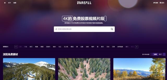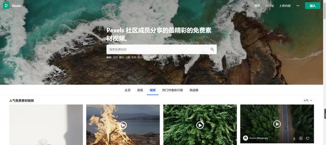 网站的视频素材相当丰富,打开视频板块就可以看到有很多4K视频了。