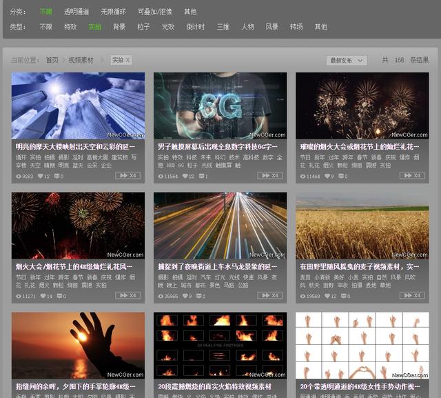 新CG儿是国内的一个影视后期交流平台,我们可以在上方查找【素材】-【视频素材】板块。
