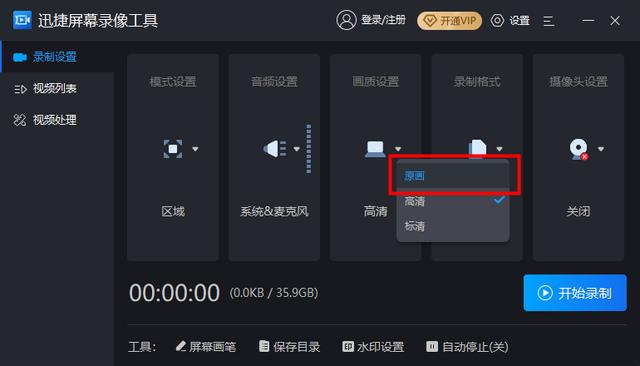 需要注意的是,如果要录制4K级的视频素材,别忘记把画质设置为【原画】、【超清】等最高级画质。