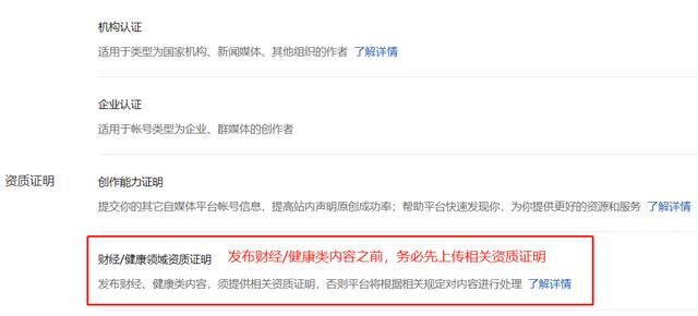 45.想在头条上发布健康和财经内容的作者,务必先上传相关资质证明或证书,否则会违规甚至直接封号,不了解平台玩法建议先不要贸然行动。