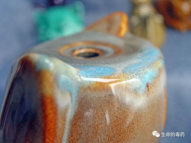 倒流壶、茶壶、存钱罐、烟灰缸,最大那个是灯座,早期工艺美术大师设计,橘黄色釉上有微微淡蓝窑变,同款灯座中比较少见的颜色。