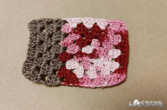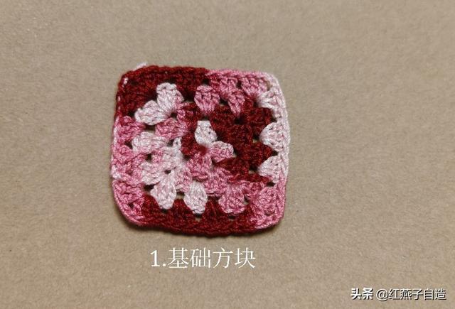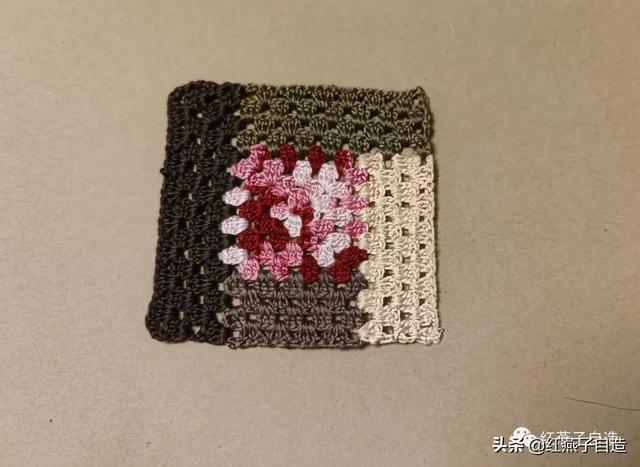 小方块花的钩织方法:第1圈:环起,在环里钩3锁针,2长针1锁针,接着钩织3组(3长针1锁针),最后再钩2长,与起立针的第3针辫子针引拔(后面都是这样引拔)。