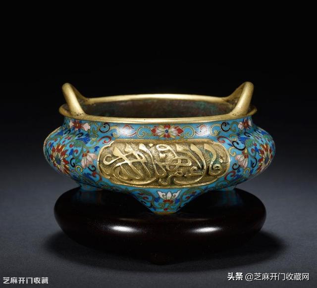 2:清乾隆铜胎鎏金掐丝珐琅阿拉伯文香炉,尺寸:高10.3厘米;直径5厘米,成交价: RMB 582,400