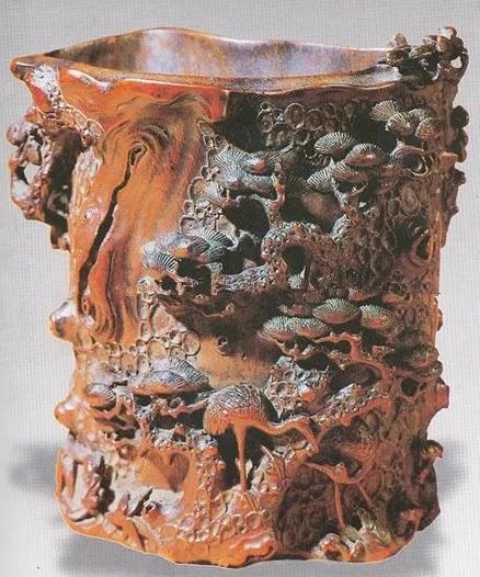 明朱松邻松鹤纹竹笔筒.南京博物馆