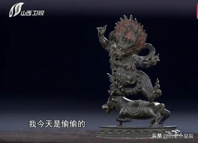 大妈表示自己不知道,老公说的自己也没记住。专家说这个东西叫阎魔敌,底下还踩着一个三只眼的青牛。很多人可能以为这件是一个牛头明王,其实不是。这是文殊菩萨的化身,当时文殊菩萨镇压了牛头明王,之后化身成这个地狱主形象镇压了它。从地狱主身上的这些特征其实能看出,胸前环绕着一条蛇,代表的是龙王,所有这遵造像的意义是很深厚的。