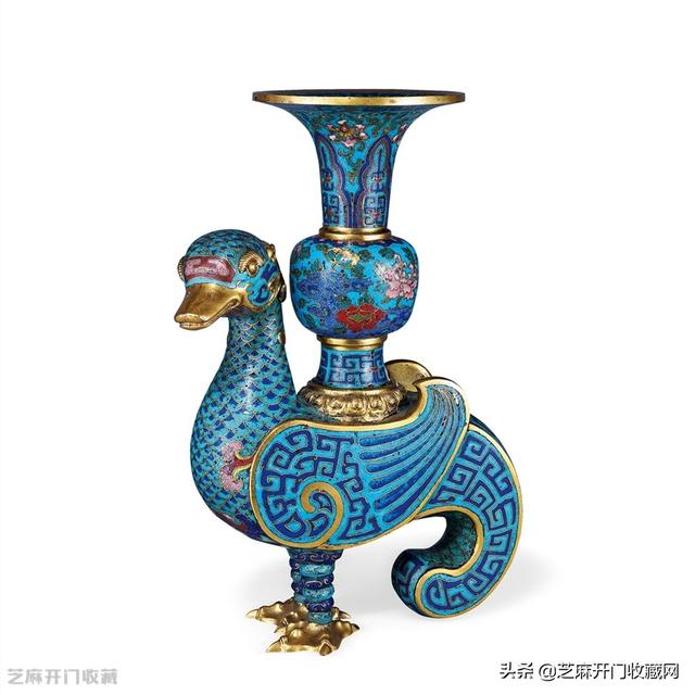 5:清乾隆铜胎掐丝珐琅凫鸟尊,尺寸:高34.3厘米,估价:HKD 400,000 ~ 600,000,成交价: HKD 802,400