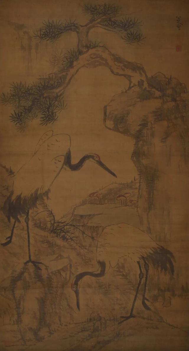 朱耷 《松鹤芝石图》轴 清 绢本设色 纵 188 厘米,横 102 厘米
