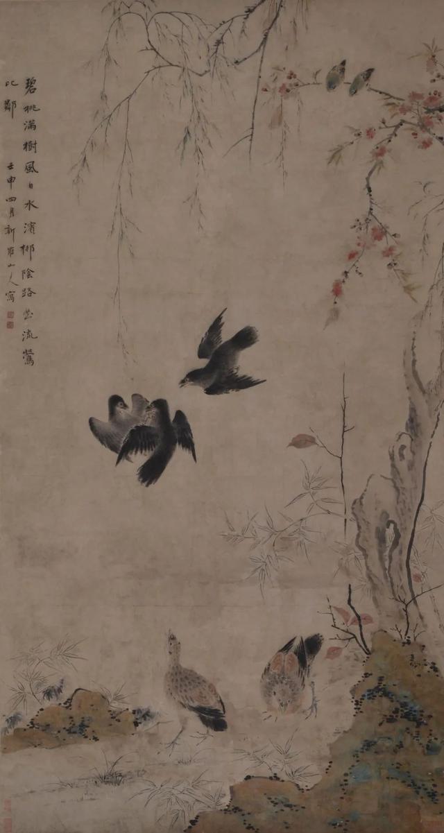 华嵒 《桃柳聚禽图》轴 清 纸本设色 纵 172.5 厘米,横 93 厘米