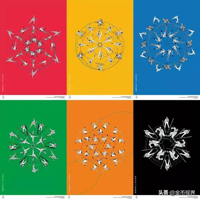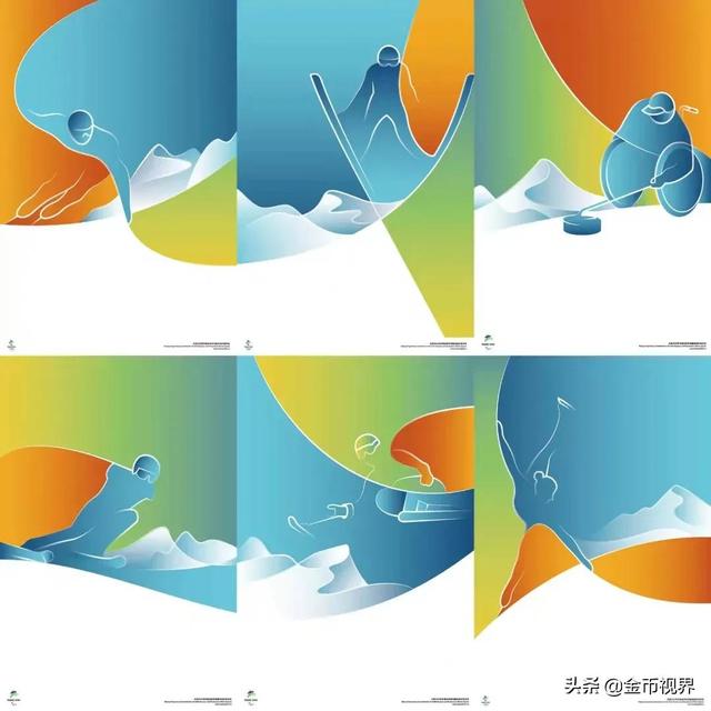 由冬奥组委设计完成,共三组六幅