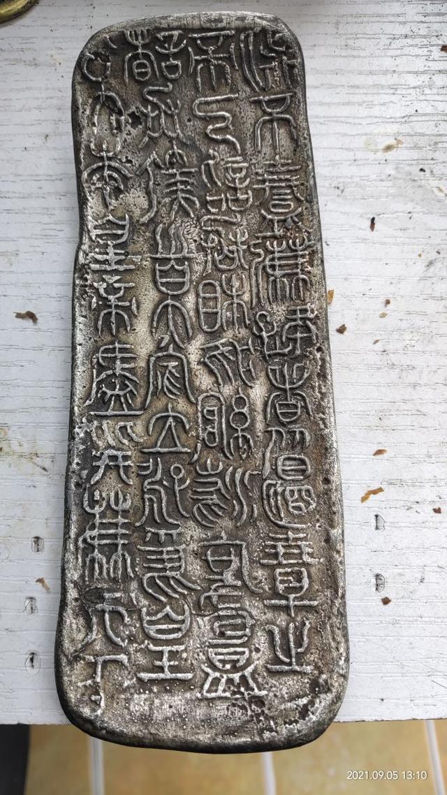 很多年前在陕西出差,偶遇一块铜板,经过我仔细察看,字全篆书体,呈反写状态,因为不认识篆文,觉得美观好看,绎讨价还价,以1200元买下。回家后请省书画协会会员才认出铜板上的字。二十六年皇帝并兼天下诸候黔首大安立号为皇帝乃召丞相状绾法度则不壹歉疑...